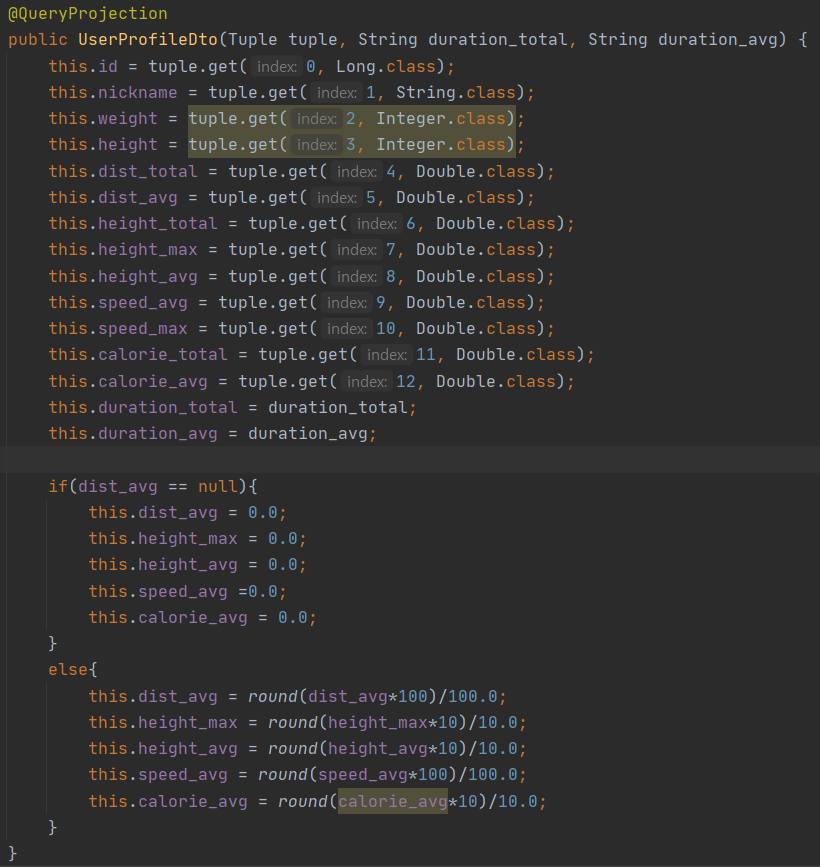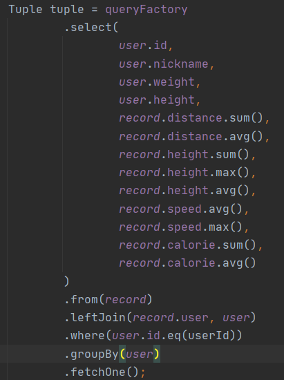 등산 기록이 없는 경우, tuple.get() == null