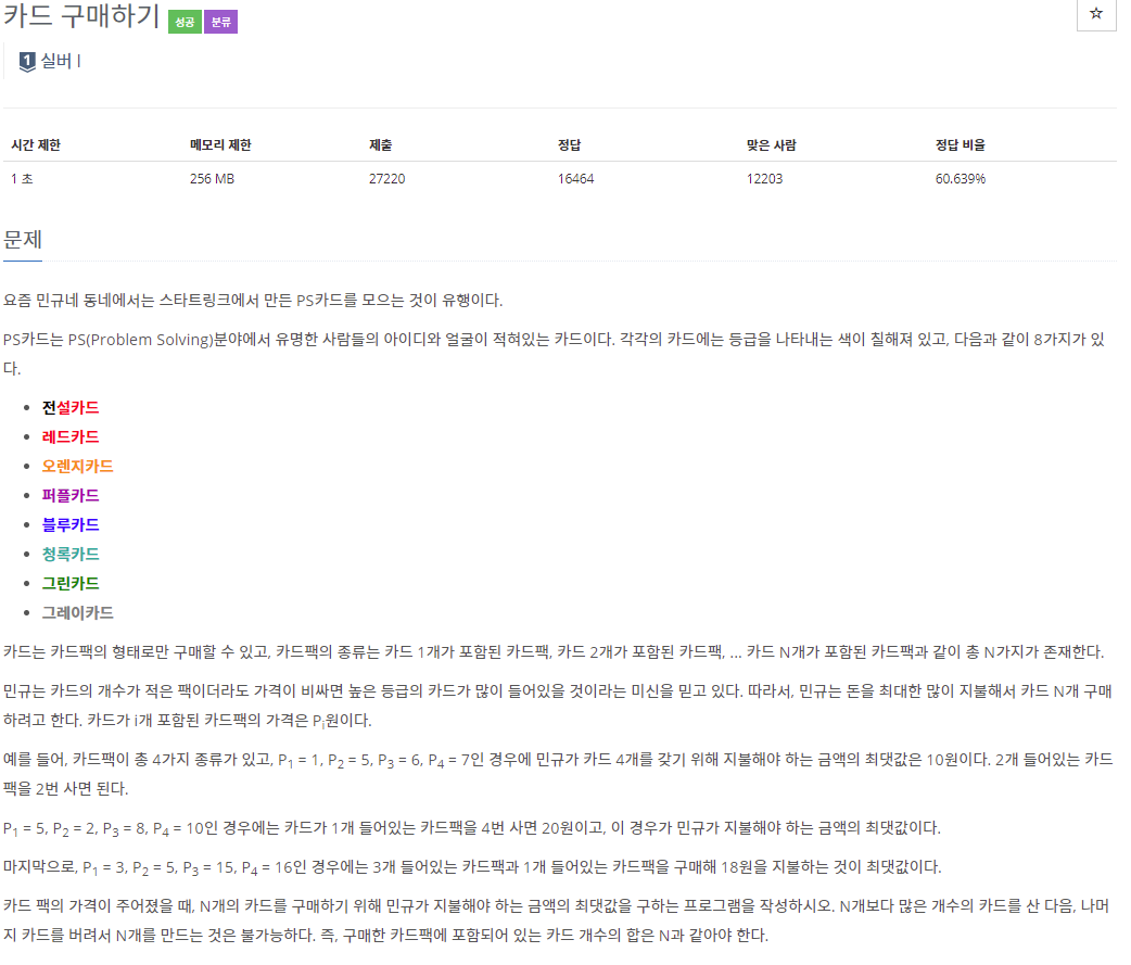 11052번: 카드 구매하기