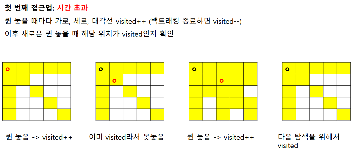 // 퀸 놓을 공간 없어서 다음 단계 진행 못하고 j가 끝까지 감